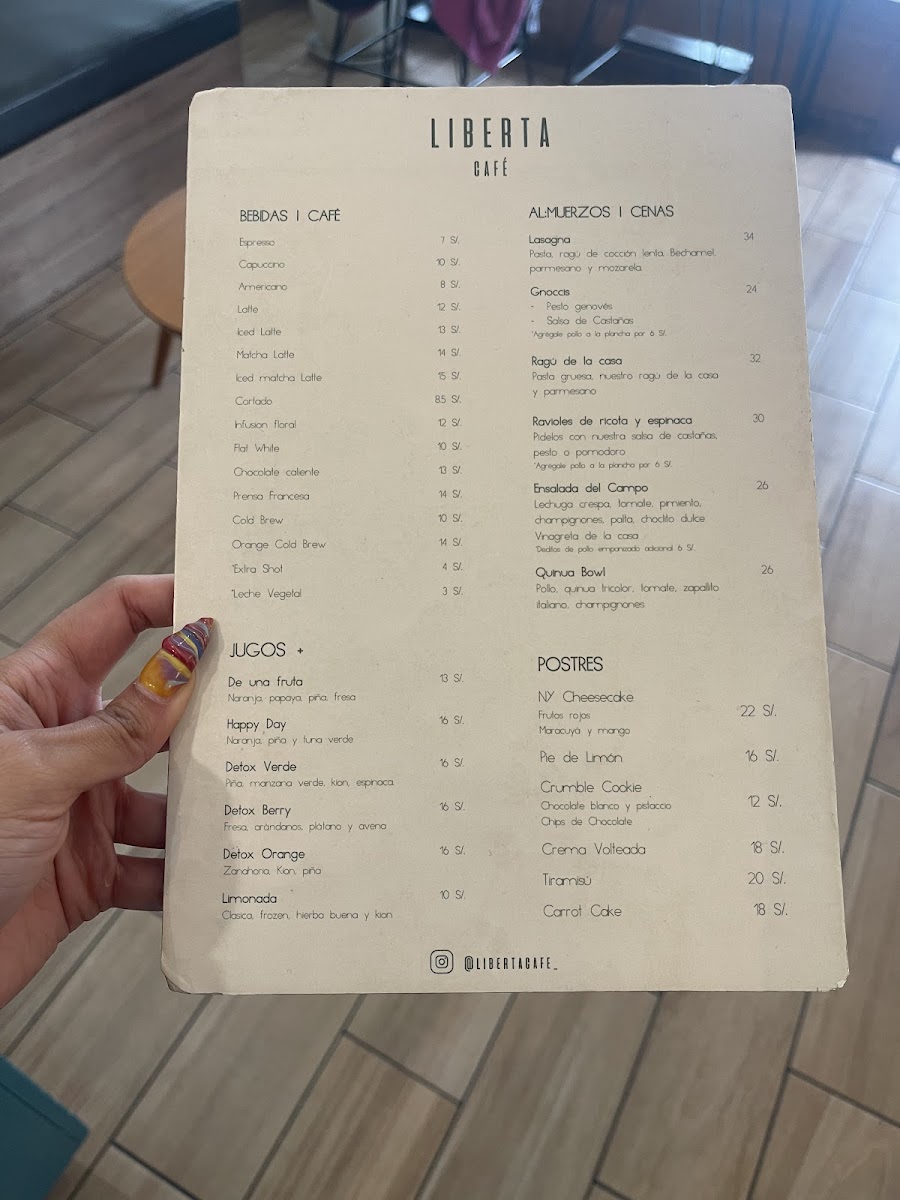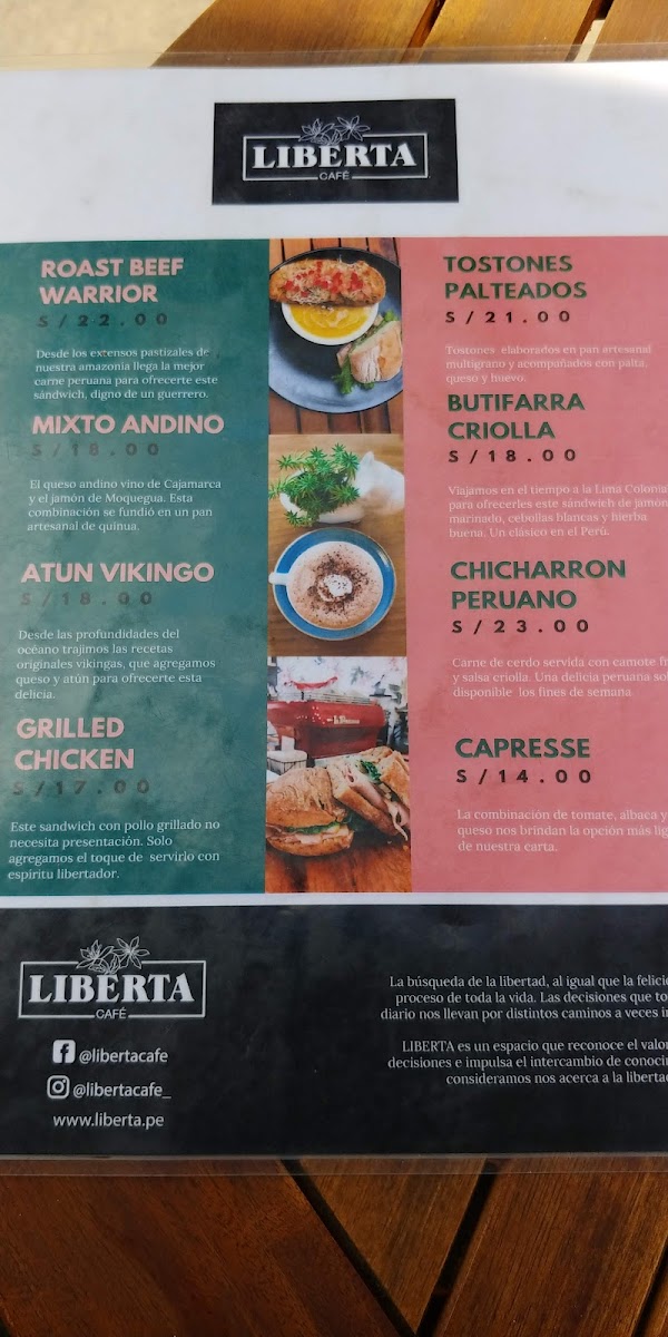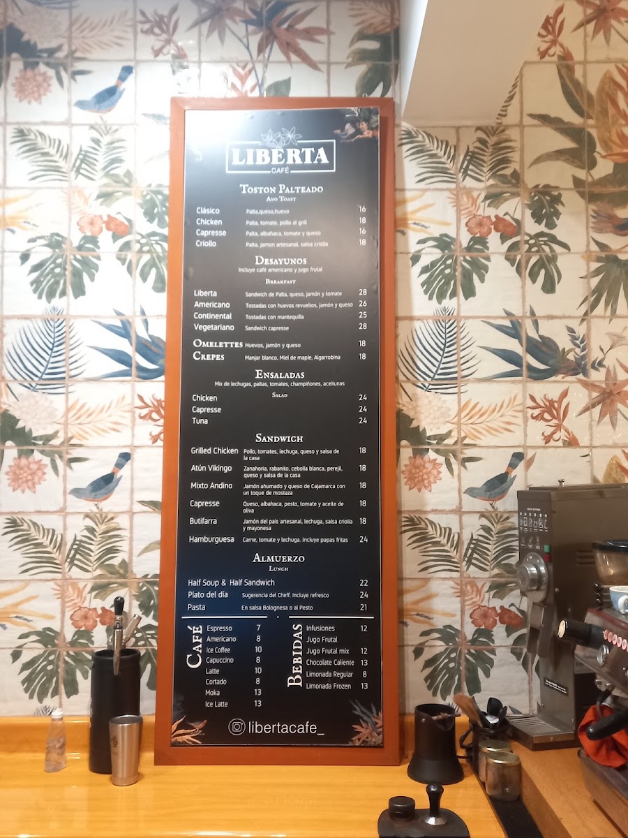 Liberta Cafe Menu